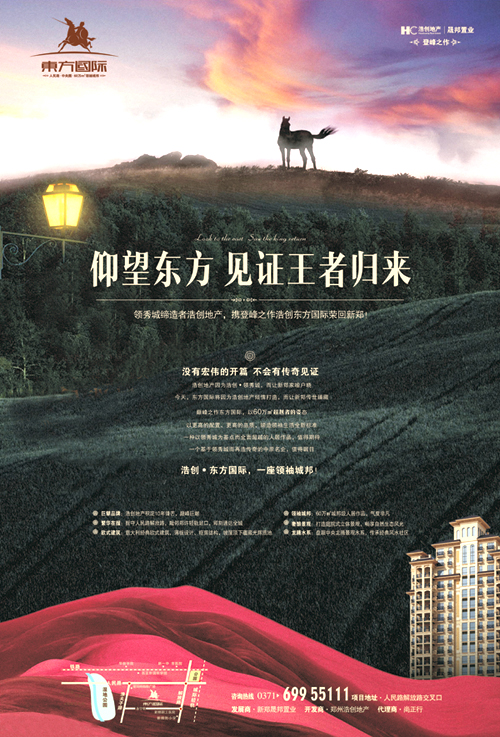 浩創·東方國際,是由鄭州浩創房地產開發有限公司投資20個億建設的一個高品位的住宅項目。作為新鄭市規模最大、品質至上的高規格社區,東方國際將成為新鄭市國際化生活社區的標榜力作,作為新鄭市政府重點項目,浩創地產10年登峰之作,以60萬㎡宏偉規劃,融多層、小高層、高層等多種建筑形態,締造新鄭市建筑領袖城邦,傳世之城,典范之作!