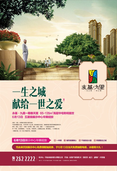 永基九里項目總占地面積近1000畝,規劃建筑面積150萬㎡,分為9期開發,一期“春天里”榮耀面市,占地130畝,建筑面積33萬㎡,坐落于九里山脈南坡,由13棟簡歐設計的高層住宅組成,總戶數3200戶,戶型面積67㎡-135㎡,一期“春天里”利用自然的坡地地形,結合居住特性打純天然的坡地景觀園林住宅,水系環繞,綠樹叢蔭讓您品味城市喧囂之外的舒適生活,巨資打造獨特的景觀園林,全區硬質鋪裝,獨有10米高流瀑景觀,外立面采用真石漆,精裝雙電梯入戶大堂,戶型全明設計,千畝國際級城市綜合體 ,開啟鷹城人居新標準。