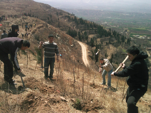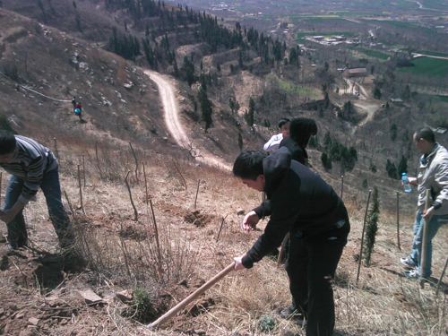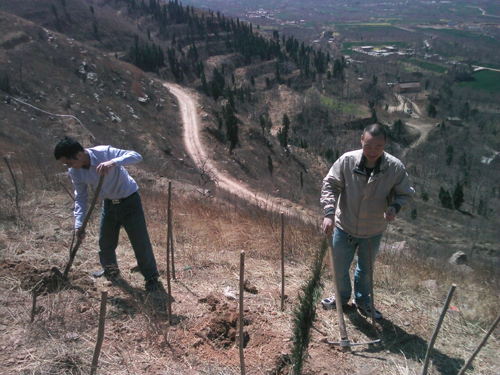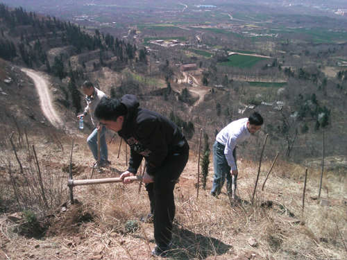 不管環境有多艱苦,我們還是完成了每人三棵的植樹任務,看著被我們精心栽種好灌