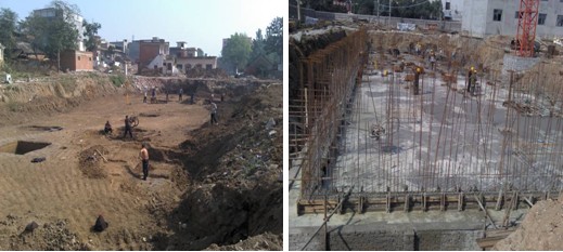 這是三號樓和十號樓,工人們在積極的工作,十號樓正在打基坑,三號樓位置的地基已經打好,項目所用的都是滿堂基礎。