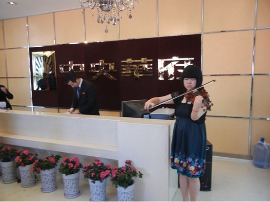 接下來就是冷餐會了,中央華府銷售中心為廣大客戶準備了豐盛的冷餐,還有小提琴表演和茶道表演等。