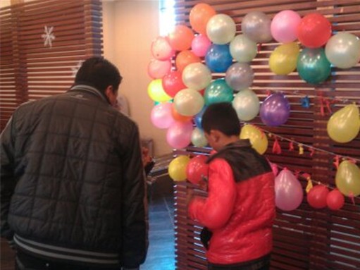 早上過來我們早早把案場精心的裝扮了一番,墻上掛滿了五顏六色的氣球,里面都有謎語氣球一響有獎。