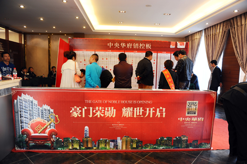 中央華府作為區域內的標桿項目,一直受到鎮平縣政府和人民的廣泛關注,開盤當天更是盛況空前。1期共推出6棟樓,11日早上8點鐘,370名VIP客戶準時到達中央華府銷售中心參加選房活動,由于前期針對客戶的篩籌工作比較到位,參加開盤的大部分客戶都選到了自己心儀的房子,看到客戶朋友們都達成了自己的心愿,現場工作人員也倍感欣慰,三個多月的辛勞總算沒有白費。