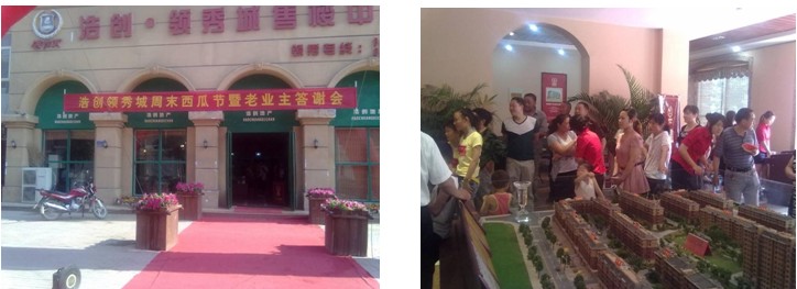 5月26日:滑縣領秀城售樓部舉辦了西瓜節活動。售樓部里聚集了領秀城的新老客戶,大人小孩都踴躍的參加吃西瓜大賽,現場氣氛異?;钴S!