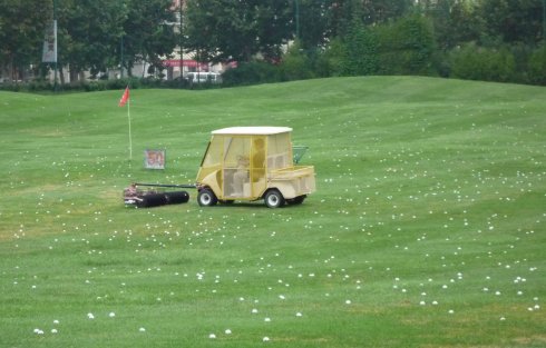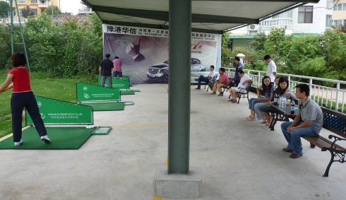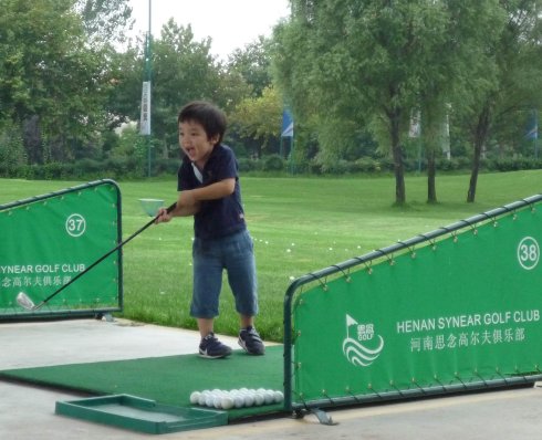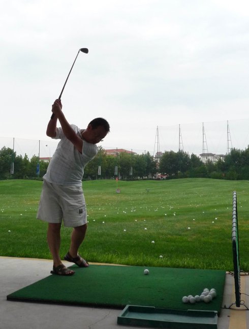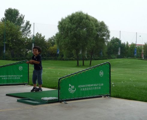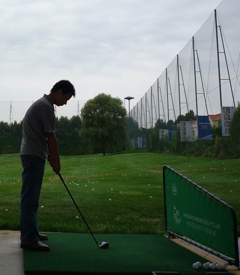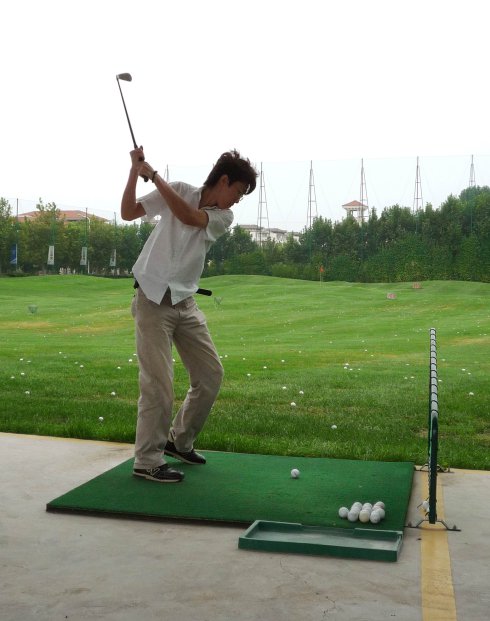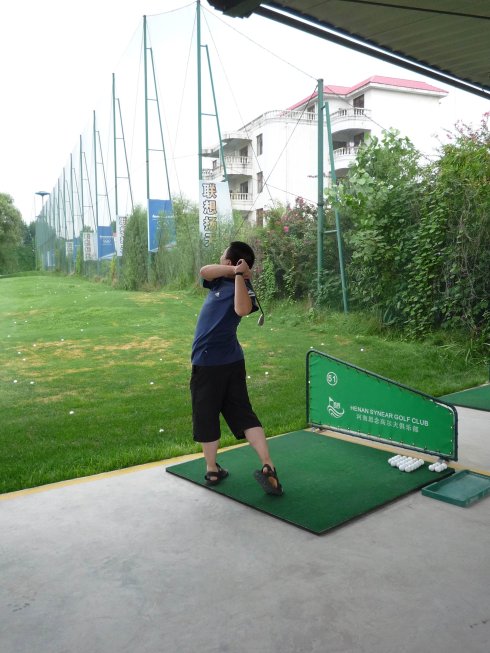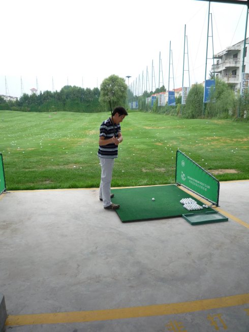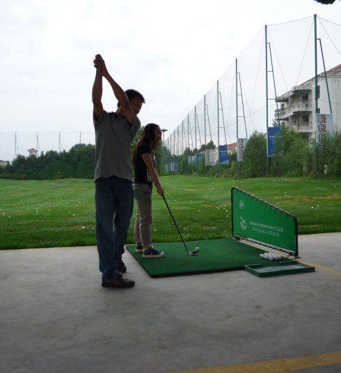 周六早上8點在約定的地方集合后,向目的地——思念果嶺山水進發。雖然天下著小雨,大家仍然興致勃勃,一路上有說有笑。車行出市區后,我們被路旁大片大片的路色植被吸引,雨后的草香伴著泥土的芬芳令人陶醉。天公作美路上還下著小雨,等我們一到高爾夫練習場天立馬見晴。大家一開始摸不著門道,經過幾輪之后漸漸熟悉了