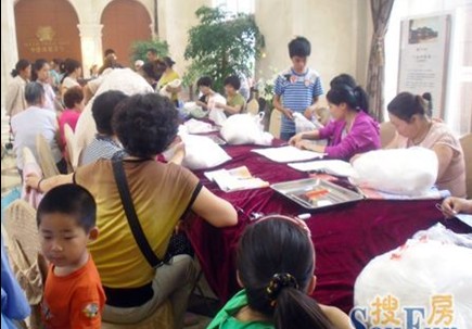 6月22日:海德一號“把幸福抱回家”抱枕DIY活動如約開啟,前來參加活動的人早早來到售樓部,挑選抱枕圖案和針線,開始為比賽做準備。