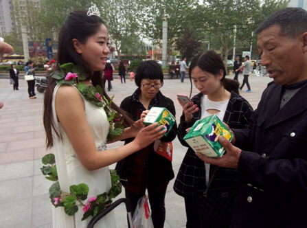 4月20日,據守地鐵口,為上班族減壓。紫荊山、人民路、二七廣場、火車站、醫學院、綠城廣場等地鐵站口,隨處可見海棠仙子的身影,為過往人群送上可口大鴨梨。